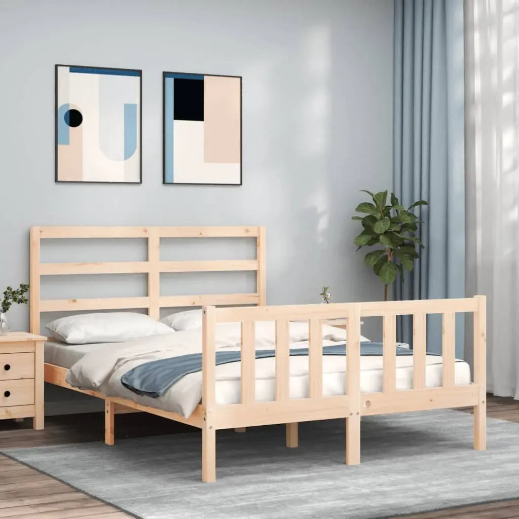 Enjoy a good night's sleep in this wooden bed frame! It makes a practical and decorative addition to your interior. Durable material: Solid pine wood is a beautiful natural material. Pine wood has a straight grain, and the knots give the material its signature, rustic look. Made of solid pinewood, this bed is sturdy and durable.Plywood slats: The plywood slats provide good weight distribution, ensuring your mattress with much-needed support and breathability.Functional headboard and footboard: The headboard and footboard of the wooden bed can keep your mattress in place. Also, the headboard provides you with excellent back support when you sit up in bed to read or watch TV. Good to know: A mattress is not included with this bed. We do offer a various selection of mattresses. You can check our shop for a matching mattress.