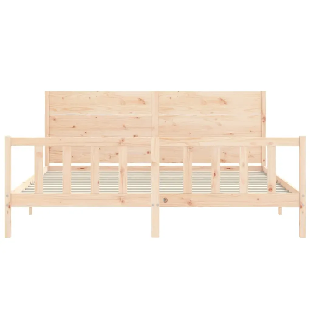 Enjoy a good night's sleep in this wooden bed frame! It makes a practical and decorative addition to your interior. Durable material: Solid pine wood is a beautiful natural material. Pine wood has a straight grain, and the knots give the material its signature, rustic look. Made of solid pinewood, this bed is sturdy and durable.Plywood slats: The plywood slats provide good weight distribution, ensuring your mattress with much-needed support and breathability.Functional headboard and footboard: The headboard and footboard of the wooden bed can keep your mattress in place. Also, the headboard provides you with excellent back support when you sit up in bed to read or watch TV. Good to know:A mattress is not included with this bed. We do offer a various selection of mattresses. You can check our shop for a matching mattress.Some headboard parts are packaged in the bed frame cartons due to space limitations.
