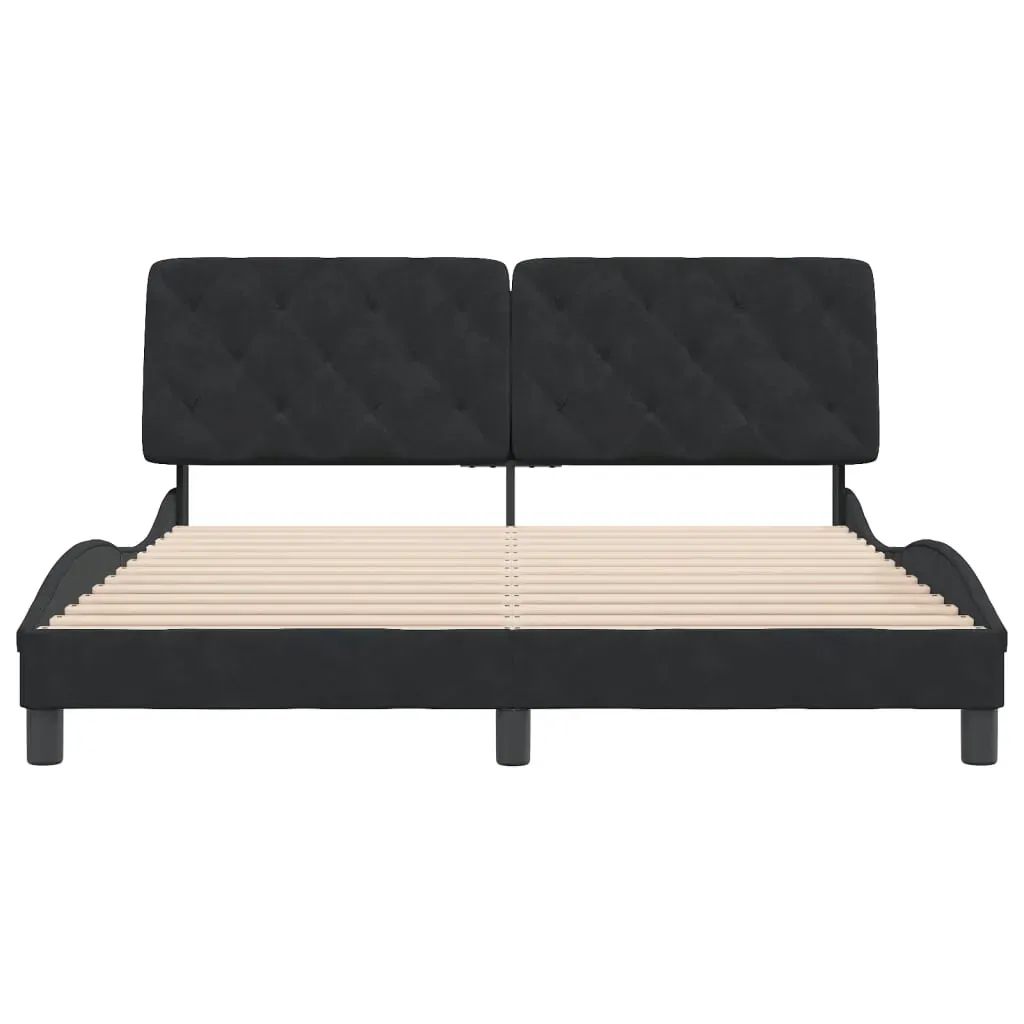 Get a better restful night's sleep from this bed frame with headboard! It makes a welcoming addition to any bedroom. Soft velvet: Velvet is a soft and comfortable fabric that feels nice against the skin.Plywood slats: The plywood slats provide good weight distribution, ensuring that the mattress stays in place with every twist and turn of your body during sleep.Excellent support: The headboard pillow is stuffed with foam for ultra-soft and optimal comfort, providing you with excellent back support while you're sitting up in bed to read or watch TV.Convenient design: The cushion headboard has a zipper for easy installation.Waved side design: The waved look of the bed frame is stylish and sophisticated, adding a modern and elegant touch to your decor, making it the focal point of your bedroom. Good to know:A mattress is not included with this bed. We do offer a various selection of mattresses. You can check our shop for a matching mattress.