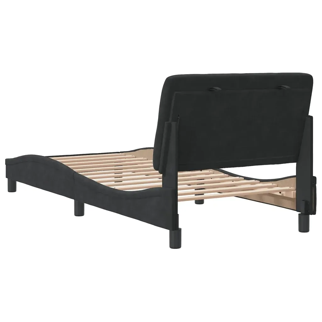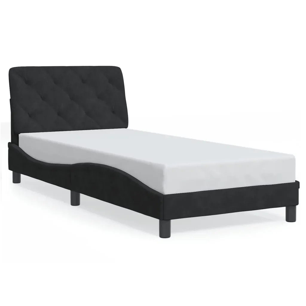 Get a better restful night's sleep from this bed frame with headboard! It makes a welcoming addition to any bedroom. Soft velvet: Velvet is a soft and comfortable fabric that feels nice against the skin.Plywood slats: The plywood slats provide good weight distribution, ensuring that the mattress stays in place with every twist and turn of your body during sleep.Excellent support: The headboard pillow is stuffed with foam for ultra-soft and optimal comfort, providing you with excellent back support while you're sitting up in bed to read or watch TV.Convenient design: The cushion headboard has a zipper for easy installation, and the hook-and-loop fasteners on the back can be used to secure the LED lights.Waved side design: The waved look of the bed frame is stylish and sophisticated, adding a modern and elegant touch to your decor, making it the focal point of your bedroom. Good to know:A mattress is not included with this bed. We do offer a various selection of mattresses. You can check our shop for a matching mattress.