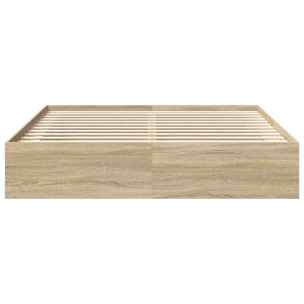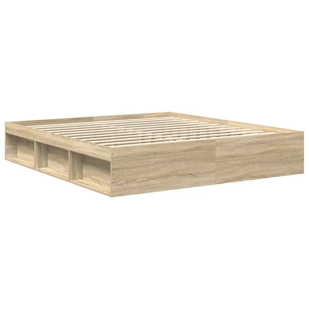 Take the modern route to your bedroom with this bed frame! It will make a practical and decorative addition to your interior. Durable material: The engineered wood is of exceptional quality with smooth surface and also features strength, stability and resistance to moisture.Plywood slats: The plywood slats provide good weight distribution, ensuring that the mattress stays in place with every twist and turn of your body during sleep.Extra storage space: The guest bed has a total of 6 compartments on two sides of the bed to store things like books, potted plants and other decorations. Good to know:A mattress is not included with this bed. We do offer a various selection of mattresses. You can check our shop for a matching mattress.