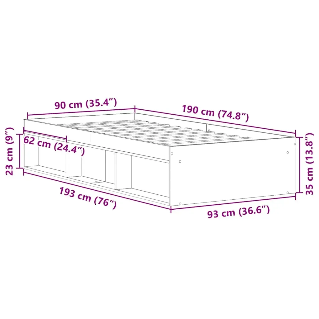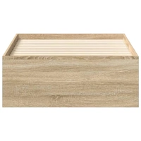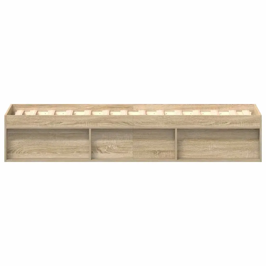 Take the modern route to your bedroom with this bed frame! It will make a practical and decorative addition to your interior. Durable material: The engineered wood is of exceptional quality with smooth surface and also features strength, stability and resistance to moisture.Plywood slats: The plywood slats provide good weight distribution, ensuring that the mattress stays in place with every twist and turn of your body during sleep.Extra storage space: The guest bed has a total of 6 compartments on two sides of the bed to store things like books, potted plants and other decorations. Good to know:A mattress is not included with this bed. We do offer a various selection of mattresses. You can check our shop for a matching mattress.