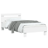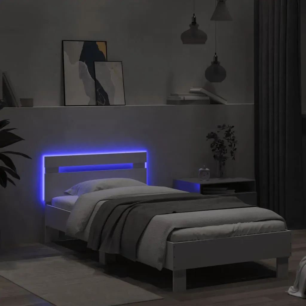 Get a better restful night's sleep from this bed frame with headboard and LED lights! It makes a welcoming addition to any bedroom. Durable material: The engineered wood is of exceptional quality with smooth surface and also features strength, stability and resistance to moisture.RGB LED lights: The bed frame is equipped with vibrant RGB LED lights. With various customisable menus, you can effortlessly change the colour of the lights and even set them to adjust automatically. These LED lights not only enhance the contemporary look of the bed base but also add to its trendy appeal.Excellent support: The bed headboard provides you with excellent back support while you're sitting up in bed to read or watch TV.Sturdy slats: The plywood slats provide good weight distribution, ensuring that the mattress stays in place with every twist and turn of your body during sleep. Good to know:A mattress is not included with this bed. We do offer a various selection of mattresses. You can check our shop for a matching mattress.The product has a USB connector that requires a certified 5V USB power source (not included).