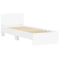Get a better restful night's sleep from this bed frame with headboard and LED lights! It makes a welcoming addition to any bedroom. Durable material: The engineered wood is of exceptional quality with smooth surface and also features strength, stability and resistance to moisture.RGB LED lights: The bed frame is equipped with vibrant RGB LED lights. With various customisable menus, you can effortlessly change the colour of the lights and even set them to adjust automatically. These LED lights not only enhance the contemporary look of the bed base but also add to its trendy appeal.Excellent support: The bed headboard provides you with excellent back support while you're sitting up in bed to read or watch TV.Sturdy slats: The plywood slats provide good weight distribution, ensuring that the mattress stays in place with every twist and turn of your body during sleep. Good to know:A mattress is not included with this bed. We do offer a various selection of mattresses. You can check our shop for a matching mattress.The product has a USB connector that requires a certified 5V USB power source (not included).