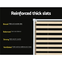 Sleek and elegantly finished in solid pine wood, the Artiss Jade Bed Frame is truly a stylish addition to any bedroom. Simple in design, the Jade Frame is meticulously constructed for durability, strength and environmental friendliness with its non-toxic finish. Across the frame, plywood slats provide good weight distribution as well as ensuring that the mattress stays in place with every twist and turn of your sleep. Underneath, central support beams further steady the bed under robust use. Not least, you will also find plenty of storage underneath the bed for those who are space-challenged with their bedrooms. Designed to fit standard Australian-sized mattresses effortlessly, the Artiss Jade Bed Frame is guaranteed to give you pleasant dreams with every sleep.