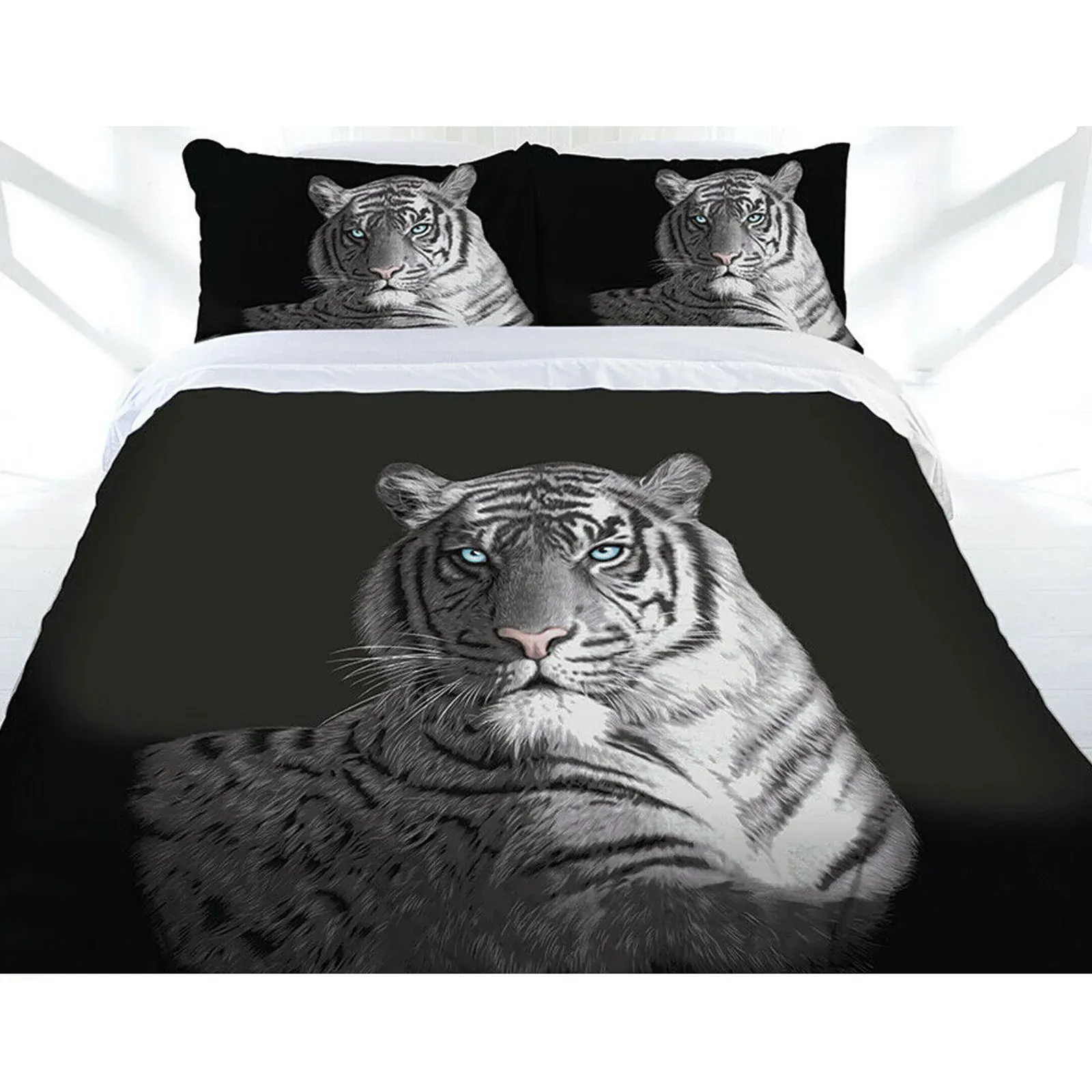 This Black Blue Eyes Quilt Cover Set Queen by Just Home will create the perfect bedroom style for animal lovers. A trendy design that will suite everyone that is looking to refresh the look of their bedroom. It features a stunning design of a resting tiger printed in soft tones of black, blue, white, silver, grey, and pink for a unique bedroom vibe. It is made from high quality and soft touch polyester cotton blend fabric that is soft against your skin.