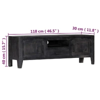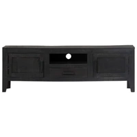 Featuring a trendy yet practical design, this solid wooden TV cabinet will definitely become a focal point of your room. This vintage-style TV cabinet, made of solid mango wood, will make a timeless addition to your home. Mango wood is a dense and robust hardwood which has beautiful brown or golden streaks and contours on its surface. Every step of the process is carried out with the greatest care, be it polishing, painting or lacquering. It has 1 drawer, 1 open compartment and 2 doors for storing knick-knacks and an open compartment for keeping multimedia appliances, gaming consoles and magazines. Important note: Colours vary from piece to piece, making each of our TV cabinets unique. The delivery is random, ensuring the exclusivity and individuality of your product.