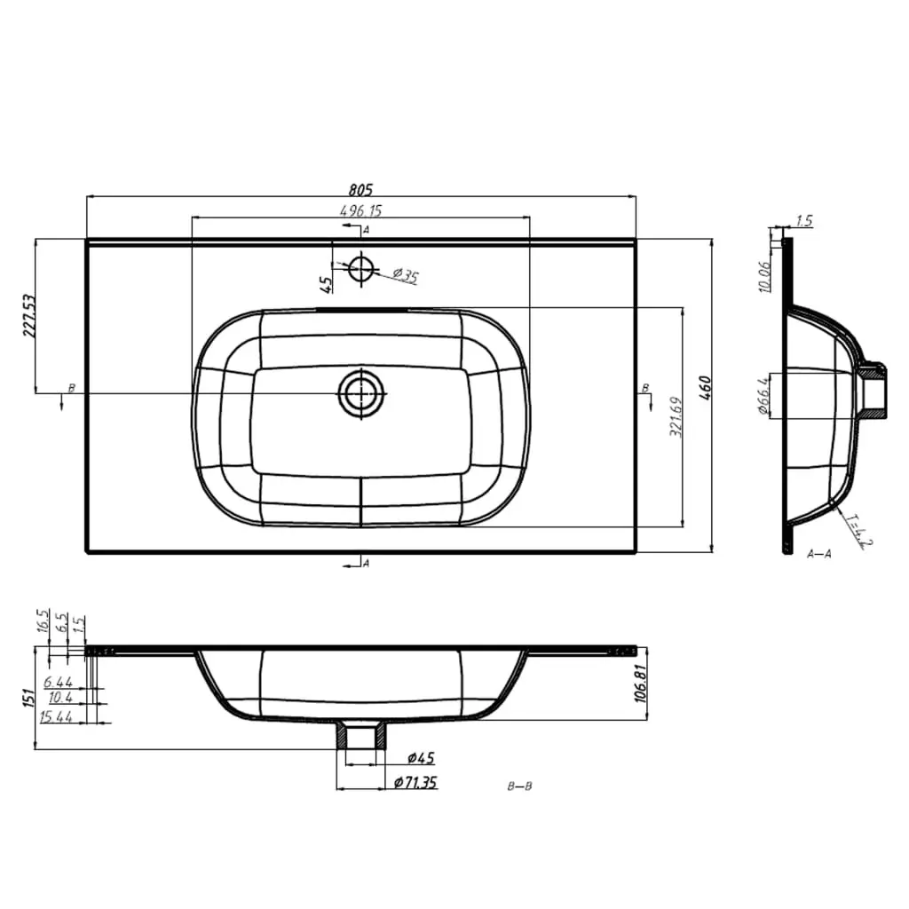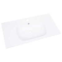 This built-in wash basin is a perfect addition to your bathroom, washroom or powder room. The washroom basin serves as a vessel for daily use, and also an adornment in your living space. The hard-wearing SMC bathroom sink is reinforced for durability. An overflow is also equipped to flow water out when it gets too full. The faucet hole is equipped for an easy tap installation. The drain hole is 4.5 cm in diameter. This bathroom sink is suitable for drop-in mounting. Please note: The tap and the drain are not included in the delivery.