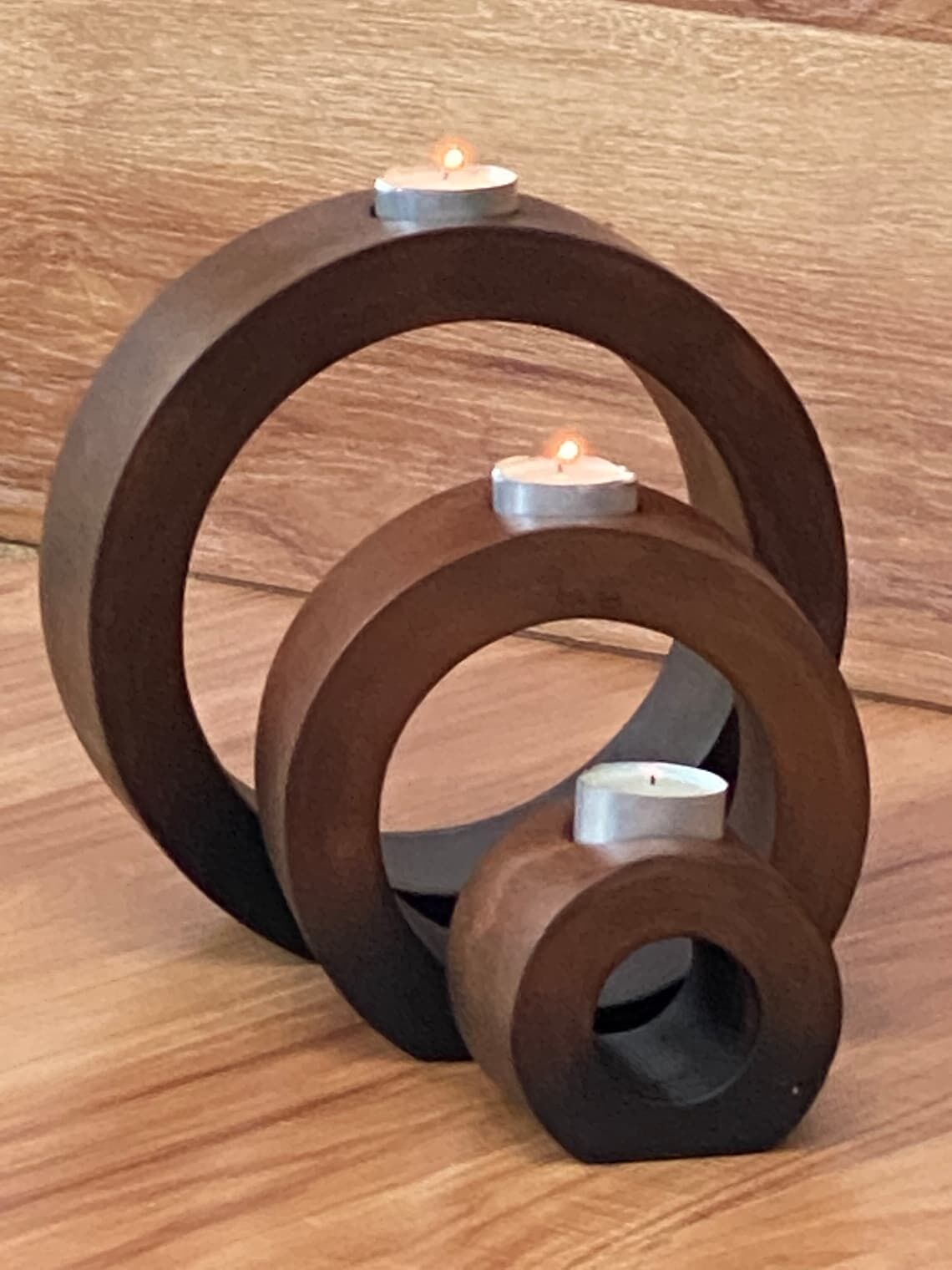 Set of 3 candle holders that stylishly can be used separately or neatly fit together to form one beautiful piece