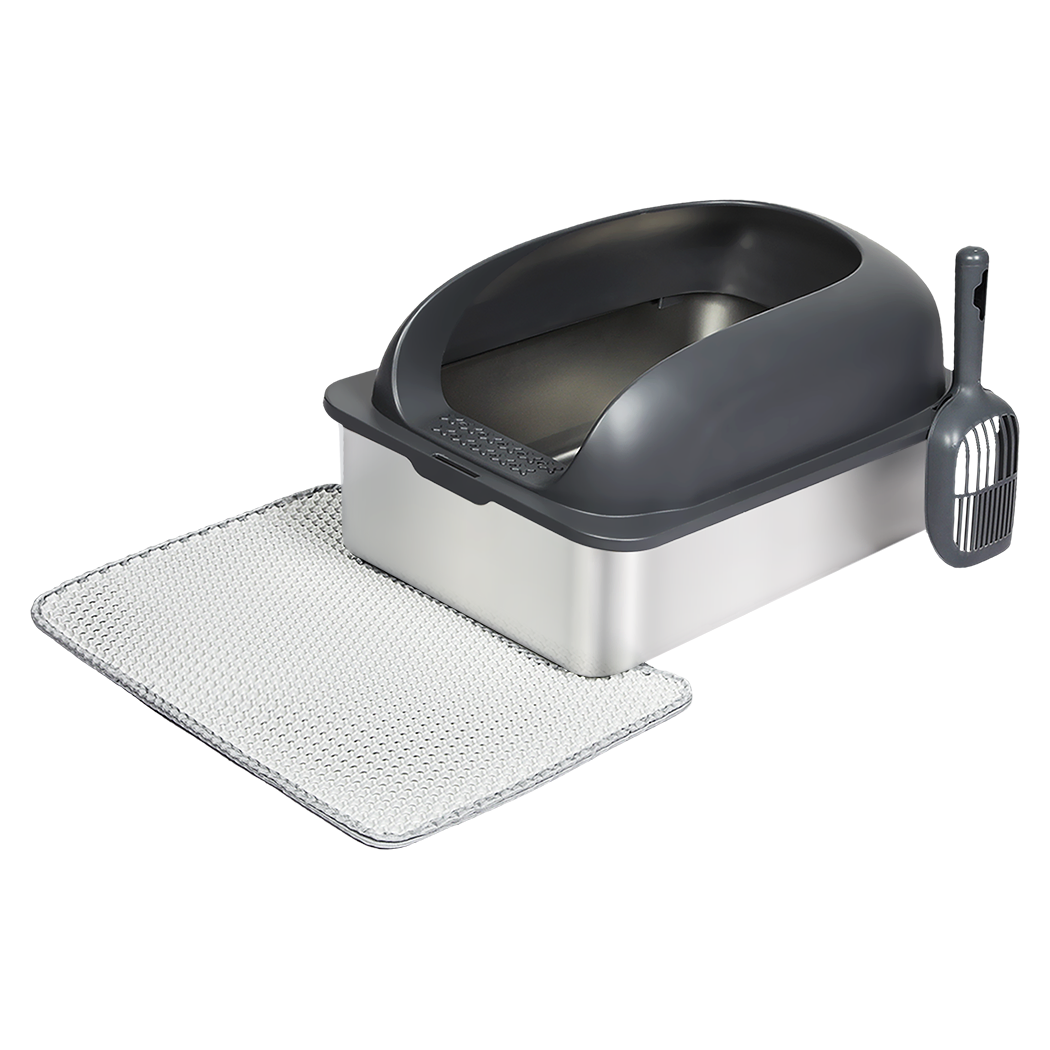 The arc-shaped, open design promotes airflow, reducing odor buildup for a fresher environment. Equipped with a widened double-layer mat, it filters out stray litter to keep floors mess-free. With a large 20L capacity and a 15cm high splash guard, it’s perfect for reducing litter scatter—even in multi-cat households. Plus, the anti-slip pads on the base ensure stability.