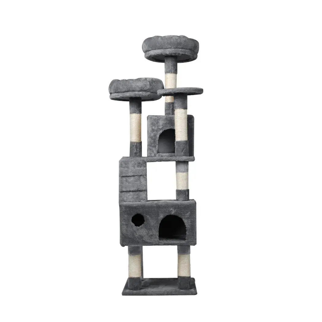 Watch your furry friends perform darnedest things with our exquisitely built Cat Tree. A perfect play area for your cats to jolly. Cats love climbing, jumping around with burst of excitement! With its specially structured multi-layers, this cat tree does not limit their happiness. A unique cat-friendly design that engages revitalizing playtime with a place to rest. Let your cat crave its natural instincts such as practicing hunting, enhancing its reflex, or scratching to mark its territory. Your cat must nurture its inner capabilities to tackle real-life situations when they go around exploring. Your cat�s very own private getaway!