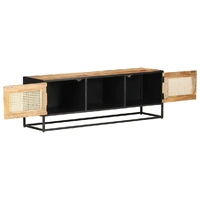 If you're looking for a simple touch of rustic charm to add to your interior decor, this solid mango wood TV cabinet is here! Solid mango wood is a tropical hardwood. It on the one hand has the strength to bear the weight, and on the other hand stands the wear and tear of time. Additionally, the exquisite craftsmanship and beautiful wood grains make every piece of HiFi cabinets slightly different from the next. The stereo cabinet is equipped with ample storage room, so you can display or keep any items you'd like well organised. The iron frame contributes to its sturdiness and stability. What's more, the TV unit features a hand-woven cane pattern on the door, adding to its rustic charming. Important note: The colours vary from piece to piece, making each wooden TV stand unique.