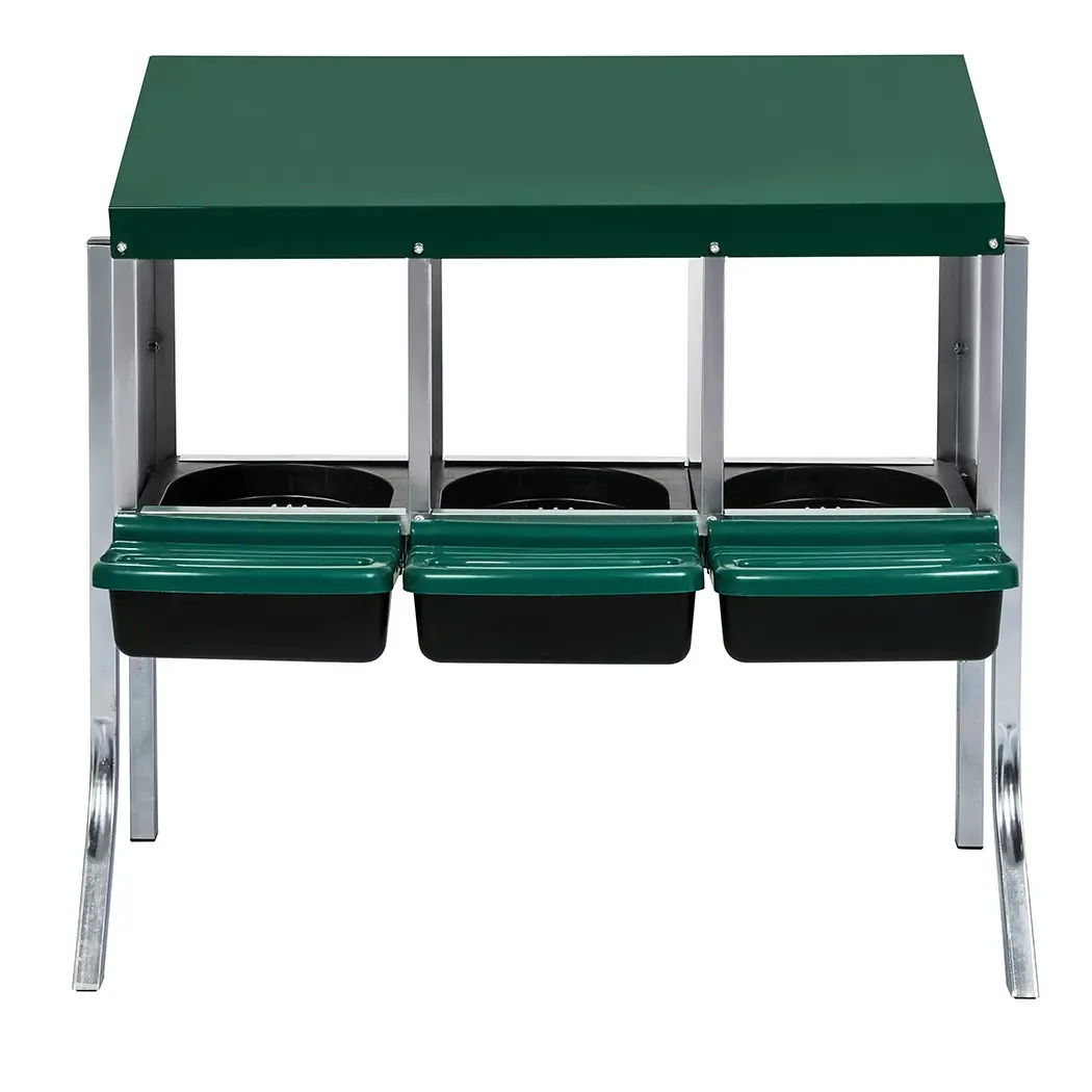 Enhance your chicken coop with this Chicken Egg Nesting Box, crafted from high-temperature galvanized steel for superior rust and wear resistance. With excellent ventilation, it keeps hens comfortable year-round and provides a perfect egg-laying environment. The Spacious nested slots maximize productivity, while the sturdy plastic base and four legs allow it to stand freely or be wall-mounted for versatile setup. Designed to reduce egg breakage and keep eggs cleaner, this nesting box is an ideal, low-maintenance solution for any poultry setup.