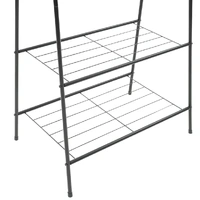 Our clothes rack will make a practical as well as decorative addition to your interior. It adds extra storage space to help keep your bedroom or cloakroom clutter free. The clothes rack is made of sturdy steel frame which makes it stable and durable. The rack has 2 shelves which provide ample space for placing your bags or shoes. The simple yet stylish design adds a touch of elegant charm to your home decor. The clothes rack is easy to assemble.