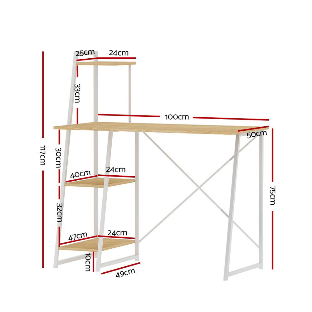 Spruce up your home office with this bright and spacious computer desk from Artiss. The premium particleboard desktop is a generous 100cm long and 50cm wide and features four built-in fixed open shelves for all your workspace needs and decoration. It has a 50kg weight capacity to carry all your essential equipment, whether you are using a laptop or a full desktop computer. It is sturdy and durable thanks to its powder-coated steel frame and x-shaped bracing for additional support. It has an easy-to-clean surface, smooth edges for safety, and anti-slip, anti-scratch feet to protect you and your floors. Whether you're studying or working from home, the Artiss computer desk is a perfectly stylish yet functional addition to your decor.