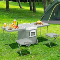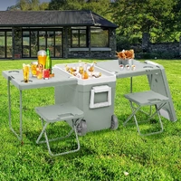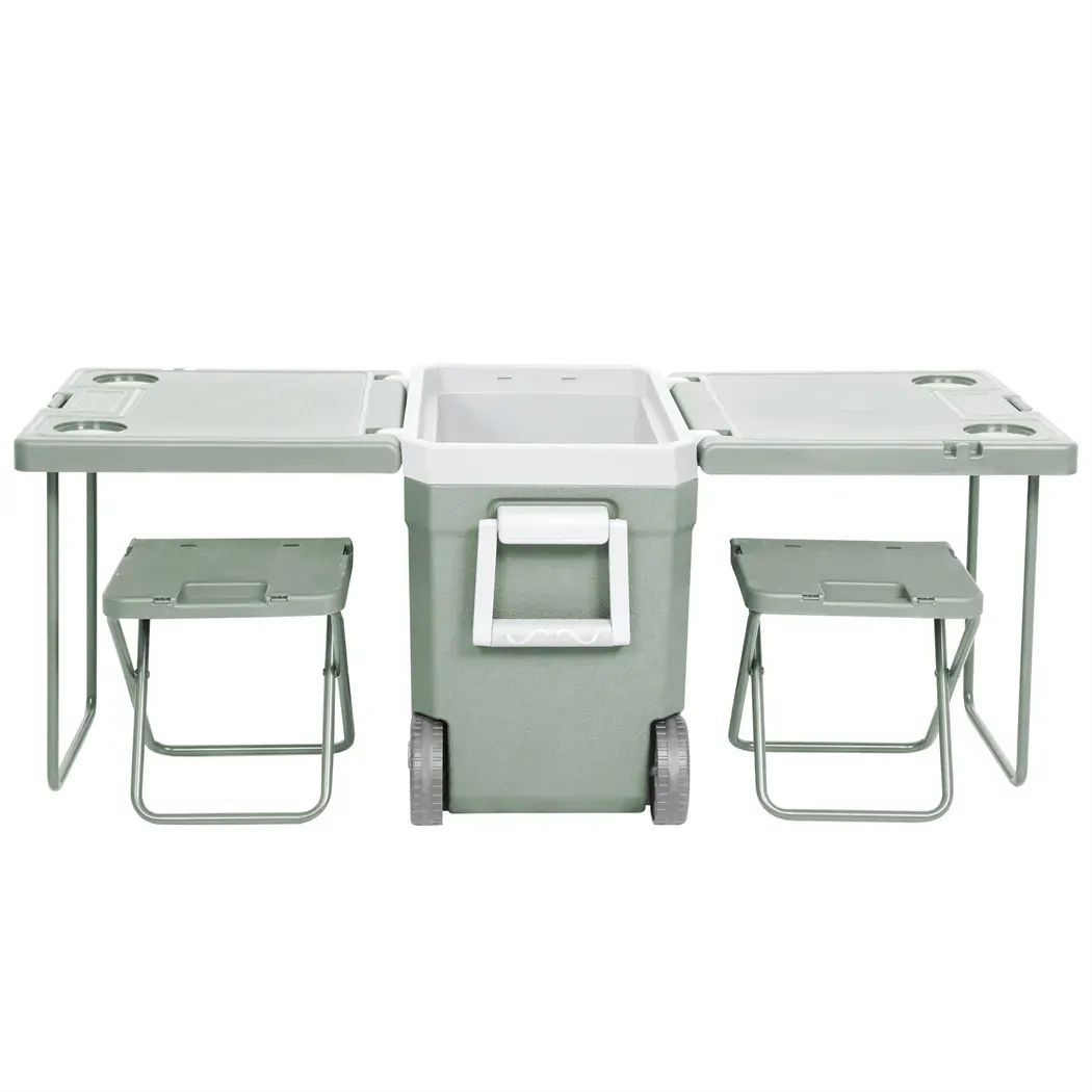 The unique design with table and chairs includes a tabletop, U-shaped bracket and folding chairs. Whether it is a picnic, camping or dinner, you can enjoy delicious food at any time without having to worry about finding a suitable dining location.