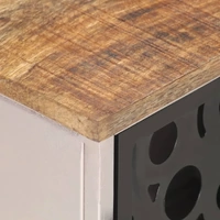 Introduce a touch of elegance and convenience to your interior decor with this trendy wooden TV cabinet! Made of rough mango wood and iron, this HiFi cabinet is durable and sturdy. You can place your TV, router, multimedia appliances, or display decorative items like photo frames, fruit baskets, or vases on the sturdy hardwood top. Equipped with 2 doors and 2 compartments, the TV unit offers ample storage space for various small items. Additionally, the doors are made of real bicycle chain wheels, which are stylish and unique. Important note: Colours and grains vary from piece to piece, making each piece unique. The delivery is random as well.