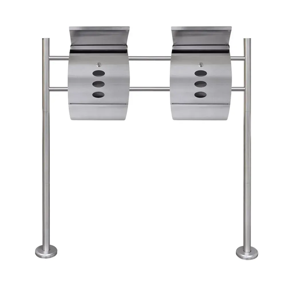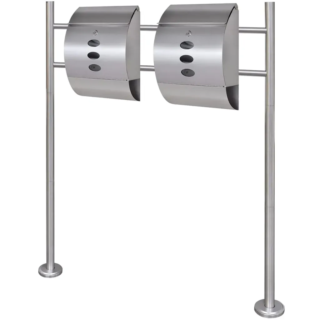 This sturdy stainless steel double mailbox has a sleek, modern design. The set consists of the stand and two seperate mailboxes, that each has a mail slot, a convenient lock with two keys, a newspaper holder, and three little windows that make it easier to check if you have mails. Our high-quality mailbox will be a great choice! Delivery includes 2 mailboxes, a stand, 4 keys and mounting accessories.