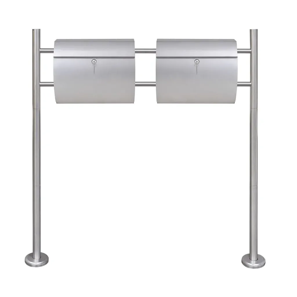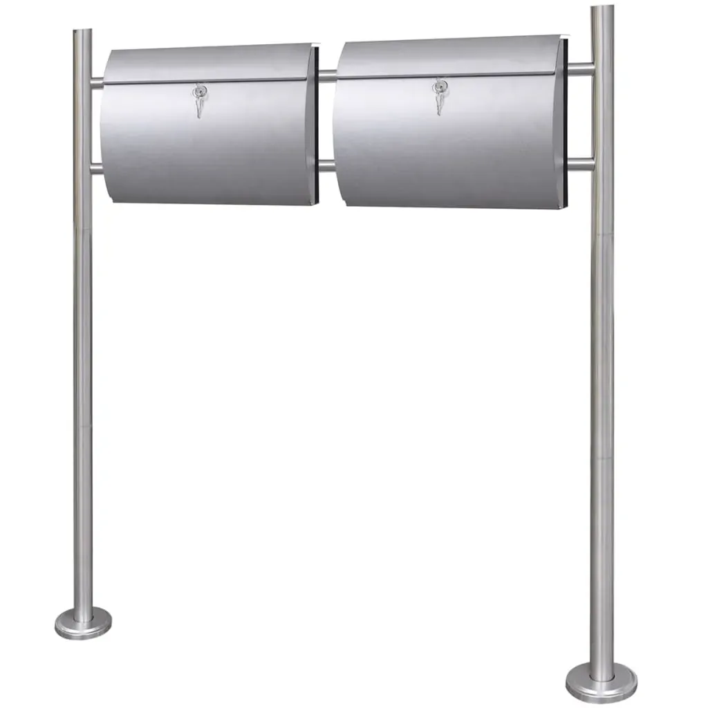 This sturdy stainless steel double mailbox has a sleek, modern design. The set consists of the stand and two seperate mailboxes, that each has a mail slot, a convenient lock with two keys, a newspaper holder. Our high-quality mailbox will be a great choice! Delivery includes 2 mailboxes, a stand, 4 keys and mounting accessories.