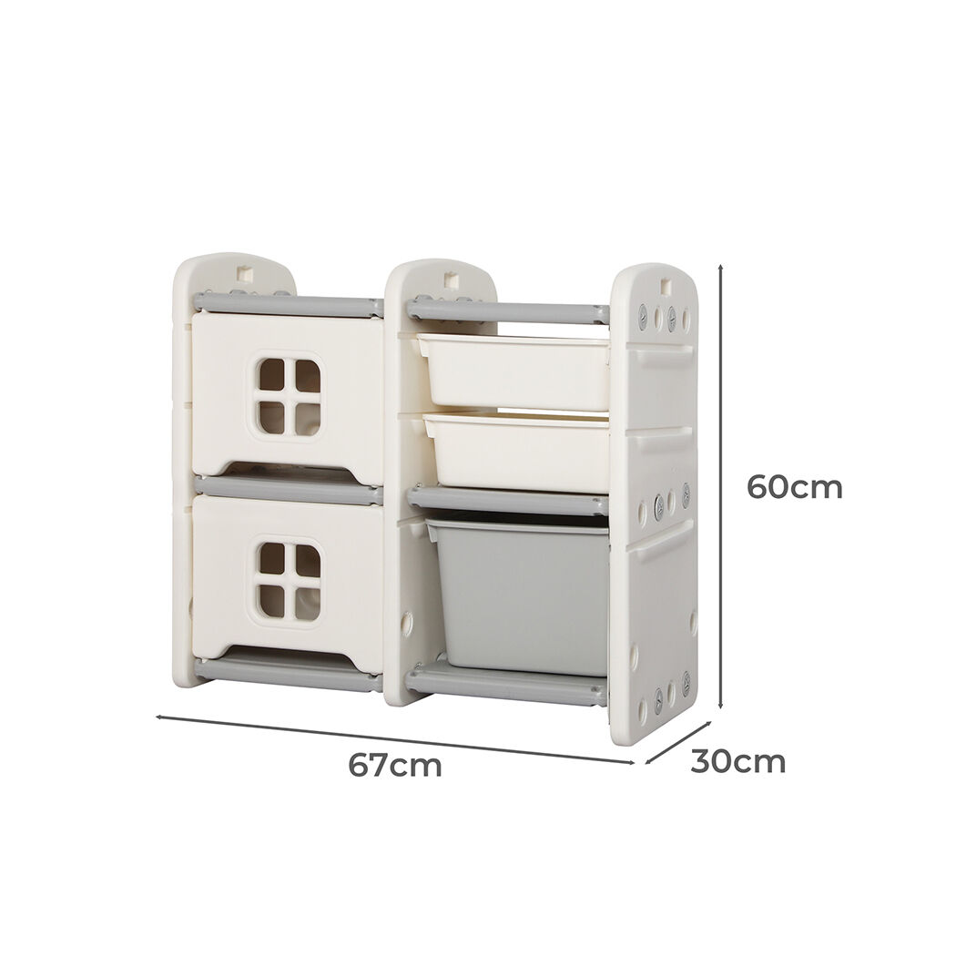 Children are rarely careful. Your toy shelves with bins have child-safe rounded corners. No more worrying about them bonking their heads yet again. Anti-slide stoppers on the drawers so you can’t push them too far.