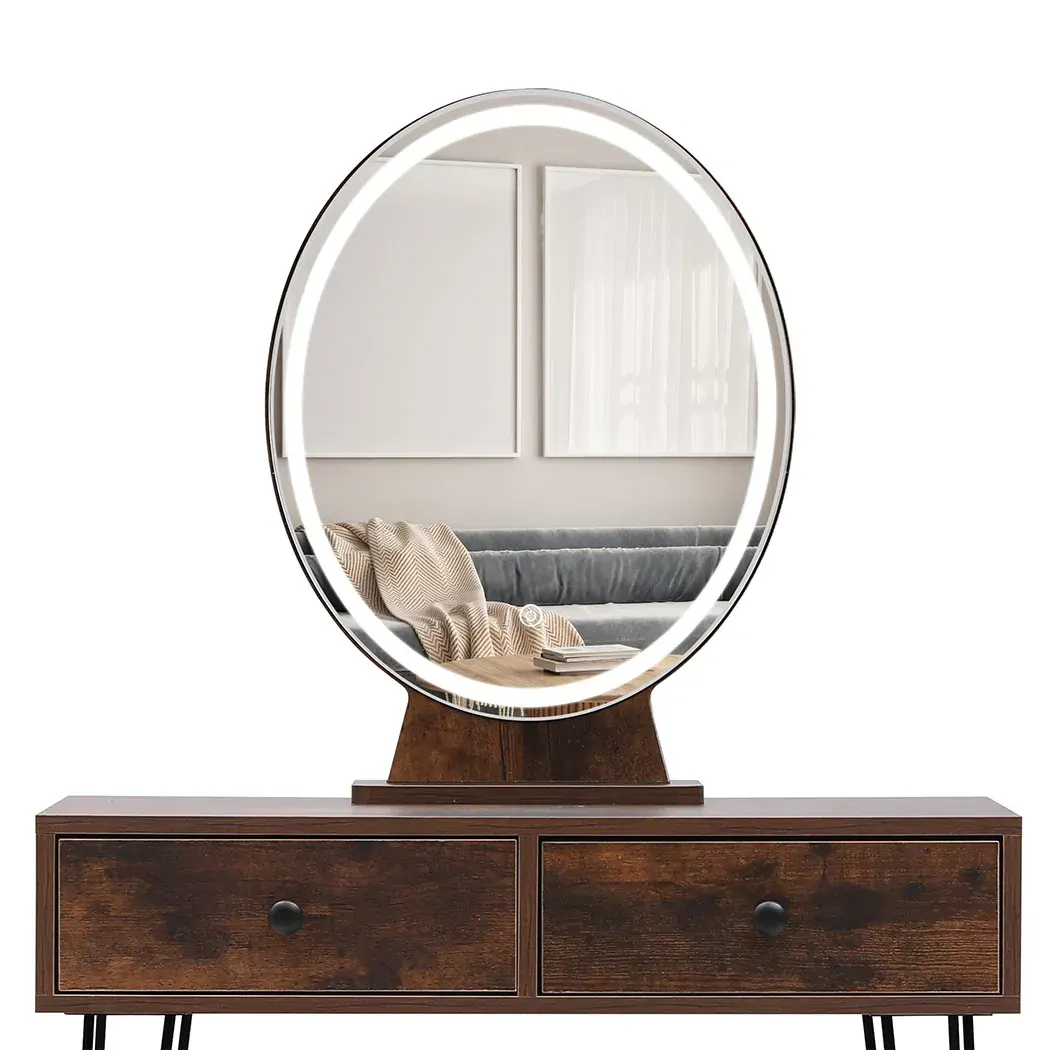 We have a touchscreen dimming mirror with LED lights installed around it. You can switch between natural light, warm light, and cold light. Then, you can choose the light you want according to different scenes and makeup needs. This fashionable mirror provides you with brightness and visual options when applying makeup.