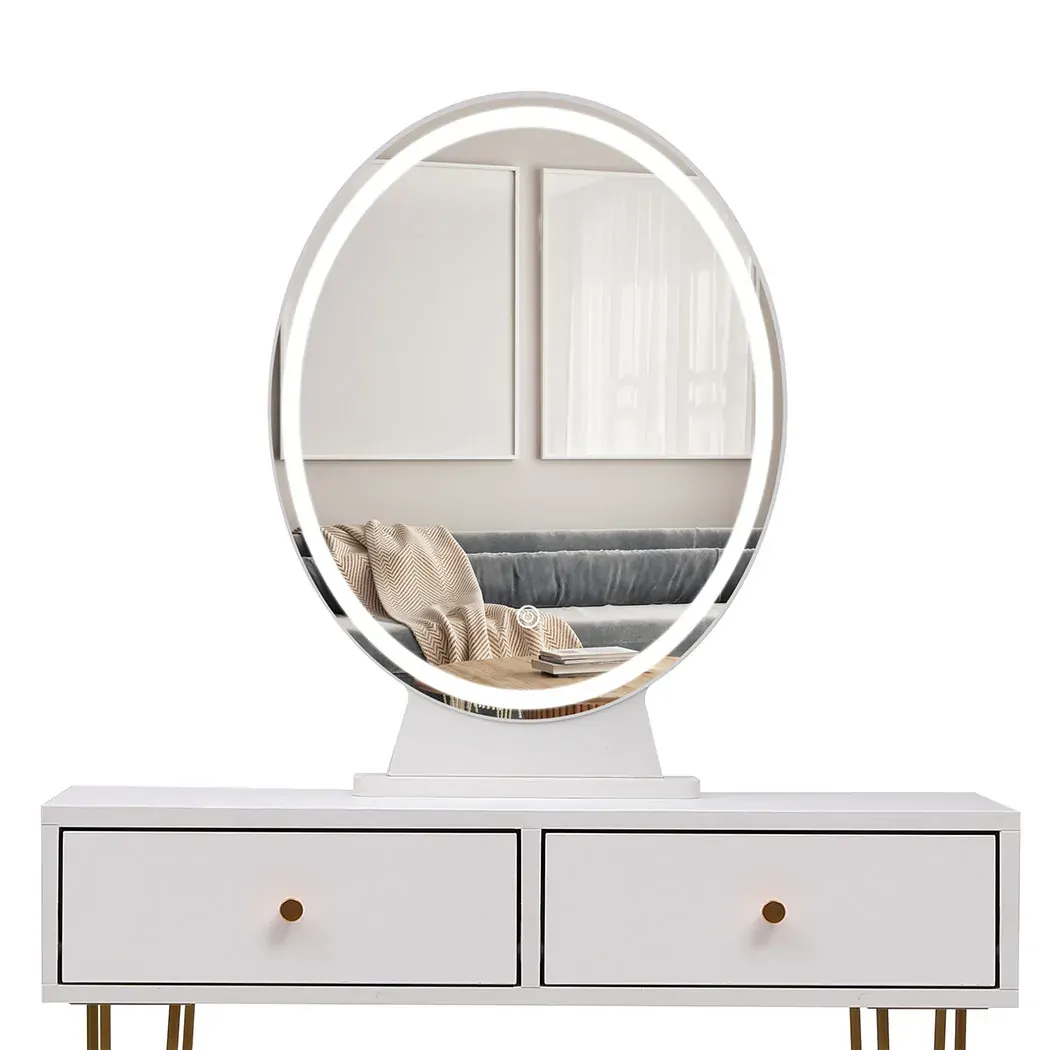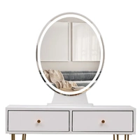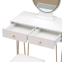 The dressing table is made of E1 grade environmentally friendly particle board. The mirror is a high-definition mercury mirror with intelligent LED lights. The legs of the table and stool are made of metal materials, which are sturdy and durable.