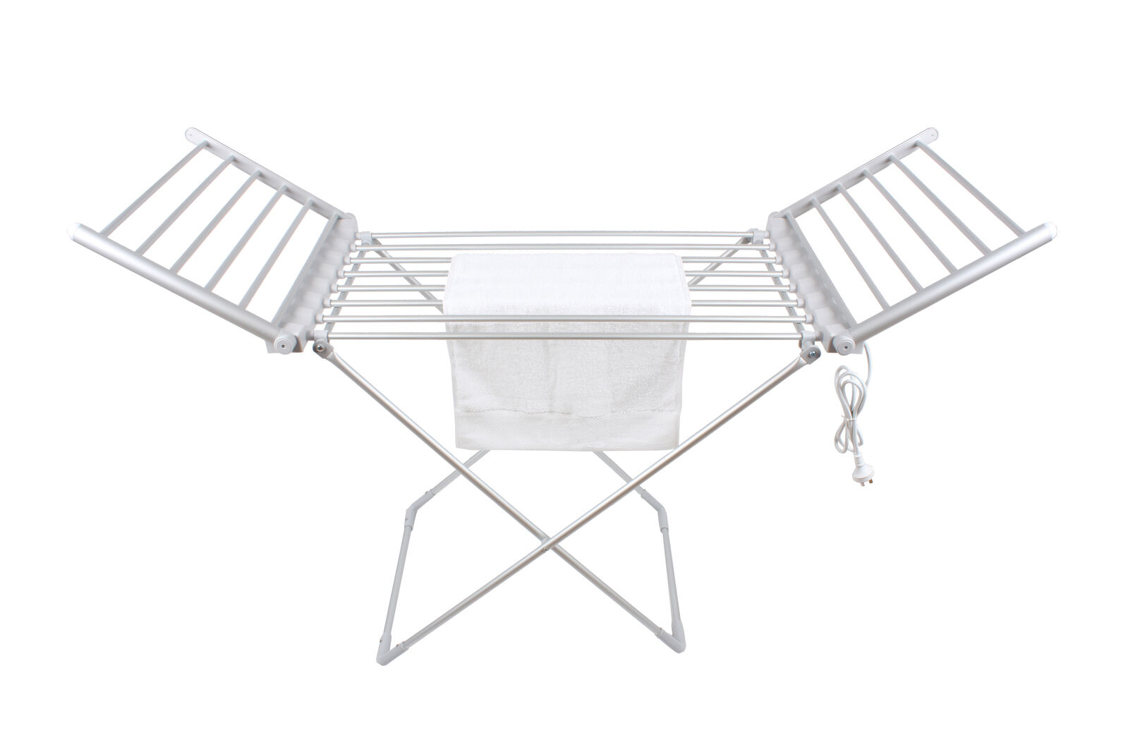 The Lenoxx Electric Freestanding Heated Towel and Clothes Rack Dryer, offers a more efficient way to dry your day-to-day items. It features 20 heated bars that effectively warm your clothes as they air-dry. With this innovative technology, you can dry loads of day-to-day items faster and more efficiently. The dryer is designed to be easy to fold and store, and comes with two attachable wings for bigger loads. Additionally, it's simple to set up and use right out of the box.