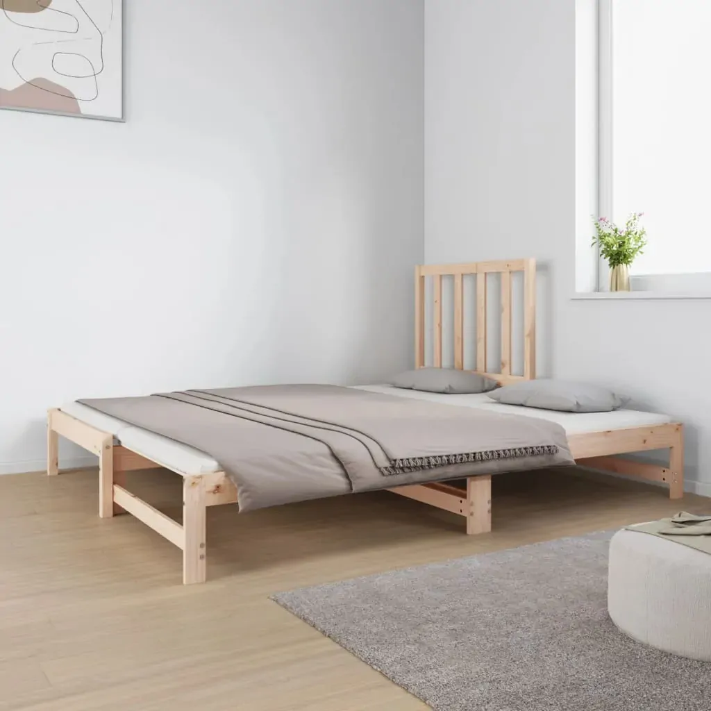 This versatile wooden day bed can be used as a bed in your bedroom and also fits perfectly as a sofa in your living room. Solid pinewood: Solid pine wood is a beautiful natural material. Pine wood has a straight grain, and the knots give the material its signature, rustic look. This guest bed is made of solid pine wood, more stable and durable.Slatted design: The slatted base provides better air circulation to keep the mattress fresher for longer, improving the weight capacity of the bed and ensuring stability.Easy usage: This sleepover bed is very convenient to use and does not require a box spring or foundation. Just place the mattress on top and enjoy a restful sleep or sitting time!Pull-out sofa bed: This wooden day bed can be used as a sofa during the day or as a bed at night, providing a quick solution for hosting overnight guests while saving space.Comfortable support: This bed header provides you with excellent back support when sitting up in bed to read or watch movies. Note:The delivery includes a daybed frame only. The mattress is not included. You can check our shop for the matching mattresses.Each product comes with an assembly manual in the box for easy assembly.