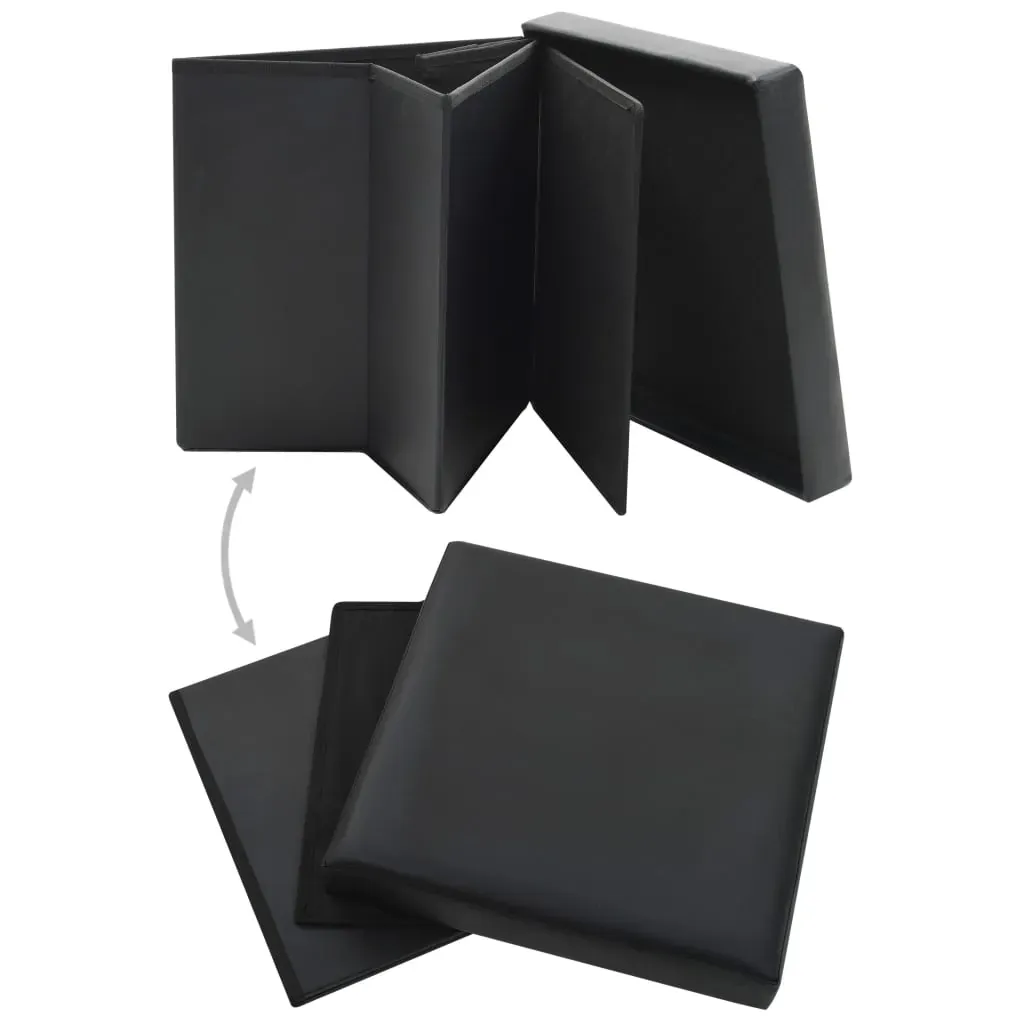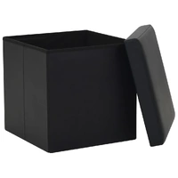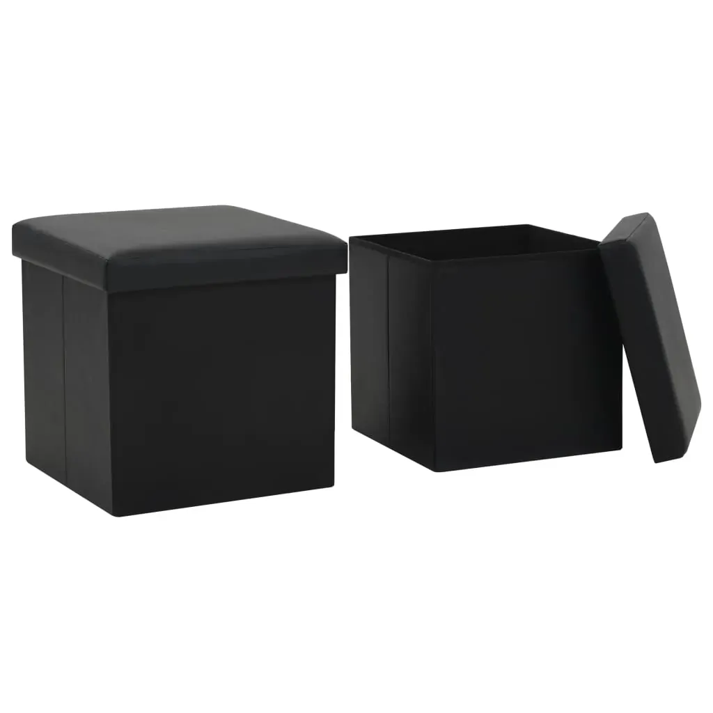 Our versatile and soft storage stools have a cosy design that will suit any interior decor. They can also be used as extra seats around your house. The storage stools are made of MDF and upholstered with artificial leather. This black colour will not easily show the stain or dust. They feature removable seat tops and have ample storage spaces for keeping a host of different items out of sight yet within reach. The chests can be folded to save space when not in use. The stools are easy to assemble. Delivery includes 2 storage stools.