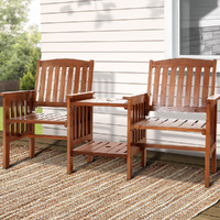 With its modern rustic vibes, the 2-Seater Garden bench is the perfect tete-a-tete set to spend the day with your bestie. Its beautiful natural fir wood construction is meticulously handcrafted to bring out the wood's finest qualities. The finishing is impeccable as is its classic design that will certainly stand the test of time and trends. With two integrated armchairs and an adjoining table, the ensemble features a strong inherent structure with ample weight capacities for armchairs and table. Better still, the table features a double-deck design for extra storage space and a built-in parasol hole to fit an outdoor umbrella if required. Not least, the bench is designed to ensure that your comfort is always forefront in its form and function.