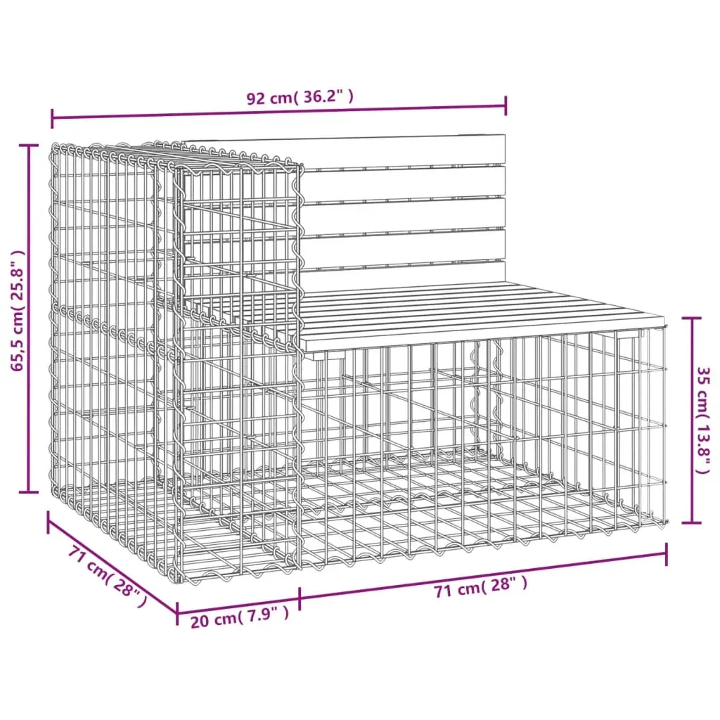Create your own outdoor seating space with this garden bench! This garden bench will be a real eye-catcher in your outdoor living space. Solid pinewood: This top of the garden seat is made of solid pinewood for durability. Solid pine wood is a beautiful natural material. It has a straight grain, and the knots give the material its signature, rustic look.Sturdy and stable base: This outdoor bench features a galvanised steel gabion basket base that is designed to be filled with rocks and gravels for additional beauty. The mesh grid of gabion basket is welded with transverse and longitudinal wires at every intersection for extra stability.Compact design: This garden bench seat is perfect for a limited space thanks to its narrow and compact design.Wide range of uses: This park bench is suitable for gardens, backyards, patio spaces, secret corner locations and more. Good to know:To make sure your outdoor furniture stays beautiful, we recommend protecting it with a waterproof cover.