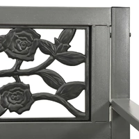 This garden bench, with its vintage style, is a real eye-catcher and will give a pleasant feel to any garden or outside space. Made of high-quality powder-coated steel, the bench is weather resistant and highly durable. The decorative rose-patterned plastic backrest adds a classy accent to any garden or patio. It also makes a perfect addition to the front of your home.