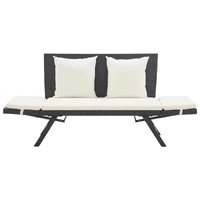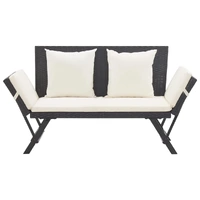 This outdoor sun bed/garden bench combines style and functionality, and will become the focal point of your garden or patio. Made of the weather resistant PE rattan, this garden bench is easy to clean, hard-wearing and suitable for daily use. It features a sturdy powder-coated steel frame, making this bench very stable and durable. It can be converted from a bench to a day bed and back again quickly and easily thanks to the adjustable sides. The thickly padded cushion will provide the ultimate comfort and added support. Additionally, thanks to the zipped design, the cushion cover is removable for easy washing. Delivery includes 1 garden bench, 1 seat cushion and 2 pillows. Note: We recommended that you cover the garden bench during rain, snow, frost or other harsh weather to prolong its life span.