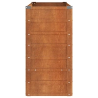 This weathering steel garden raised bed is a great choice for DIY enthusiasts to decorate their gardens, balconies, or patios. Durable material: Corten steel, also known as weathering steel. This is anti-corrosive by its very nature. It develops a rusty protective layer against corrosion when first exposed to atmospheric conditions. Thus, you don't need to paint it. This can help you save on maintenance and repair costs. The distinctive brown colour on the corten steel will surely be an eye-catcher. Finally, weathering steel is exceptionally durable and will stand up to the test of time.Ample space: The planter is deep and wide enough to hold a large amount of soil and provide ample space for your plants, vegetables, herbs, and flowers.Sturdy frame: The steel frame and interior support brackets of the raised bed ensure sturdiness and stability.Open bottom: The bottomless design provides good drainage for plants and prevents water buildup that causes the roots of plants to rot. It also allows plants to better absorb nutrients. You can place it on soil, grass, or concrete floors.Safe edge fold: The rim of the garden pot has an edge fold design, so no dangerous sharp edges are exposed. Good to know:This product is not rusted yet and has a normal metal colour when you receive it, but rust will develop over time. You could speed up the rusting process by spraying it with soap water and salt water. To keep your clothes stain-free, avoid contact with the developing rust layer.To make assembly as easy as possible, each product is delivered with a manual.