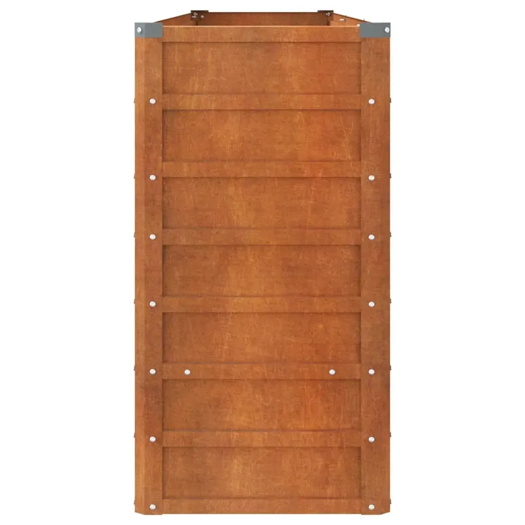 This weathering steel garden raised bed is a great choice for DIY enthusiasts to decorate their gardens, balconies, or patios. Durable material: Corten steel, also known as weathering steel. This is anti-corrosive by its very nature. It develops a rusty protective layer against corrosion when first exposed to atmospheric conditions. Thus, you don't need to paint it. This can help you save on maintenance and repair costs. The distinctive brown colour on the corten steel will surely be an eye-catcher. Finally, weathering steel is exceptionally durable and will stand up to the test of time.Ample space: The planter is deep and wide enough to hold a large amount of soil and provide ample space for your plants, vegetables, herbs, and flowers.Sturdy frame: The steel frame and interior support brackets of the raised bed ensure sturdiness and stability.Open bottom: The bottomless design provides good drainage for plants and prevents water buildup that causes the roots of plants to rot. It also allows plants to better absorb nutrients. You can place it on soil, grass, or concrete floors.Safe edge fold: The rim of the garden pot has an edge fold design, so no dangerous sharp edges are exposed. Good to know:This product is not rusted yet and has a normal metal colour when you receive it, but rust will develop over time. You could speed up the rusting process by spraying it with soap water and salt water. To keep your clothes stain-free, avoid contact with the developing rust layer.To make assembly as easy as possible, each product is delivered with a manual.