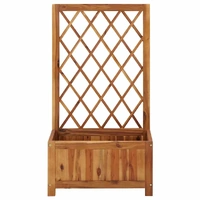This wooden raised bed, featuring a built-in trellis, will become the focal point of your garden, patio or terrace. The planter is made of solid acacia wood that has been given a light oil finish to bring out its rich, natural colour and make it weather resistant. The planter has an understated, rustic design and will add a touch of natural charm to your outdoor living space. The garden planter has a large flower box, which can accommodate a considerable number of plants and flowers. The integrated trellis will add a gorgeous, decorative effect when covered with beautiful climbing plants. Please note that wood is a natural product and may show imperfections.
