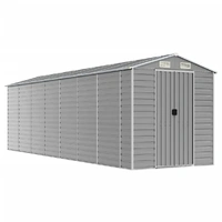 Expand your outdoor storage possibilities and protect your tools with this multifunctional garden shed. Robust material: The garden tool shed is made of galvanised steel, which prevents rusting and endures long-time use. Steel is an exceptionally hard and strong material. It offers sturdiness and stability. Galvanisation provides better protection against corrosion and is useful for products that'll be used outdoors as well as in harsh environments.Ample storage space: This metal shed provides ample space to store your firewood, garden tools, furniture, equipment, and more.Convenient handles: The storage shed features handles on the door for easy entry.Good ventilation: The outdoor shed is equipped with 4 air vents, providing ventilation to reduce the accumulation of moisture and odour in the house.Sloping design: The sloping roof ensures unimpeded drainage of water.Good to know:To prevent damage from heavy snow buildup, we recommend clearing the roof regularly during winter.