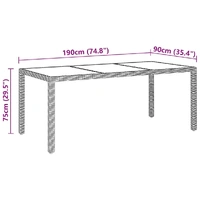 Combining both style and function, this poly rattan garden table will surely be the centerpiece of your garden, patio or any other living space. Featuring a powder-coated steel frame wrapped with poly rattan, the outdoor table is sturdy and stable. In addition, the tabletop is made of tempered glass, making it easy to clean. Thanks to the lightweight construction, the garden table is easy to move. Note: In order to extend the life of your outdoor furniture, we recommend you to clean it regularly and do not leave it outdoors without protection unnecessarily.Clean: Use a mild soap solutionStoring: If possible, store in a cool, dry place indoors. If the product is stored outdoors, protect it with a waterproof cover. Wipe and dry the excess water or snow from flat surfaces after a rain or snowfall. Allow sufficient air circulation to avoid moisture-related damage.