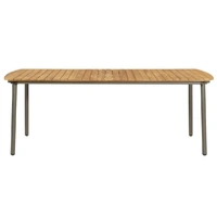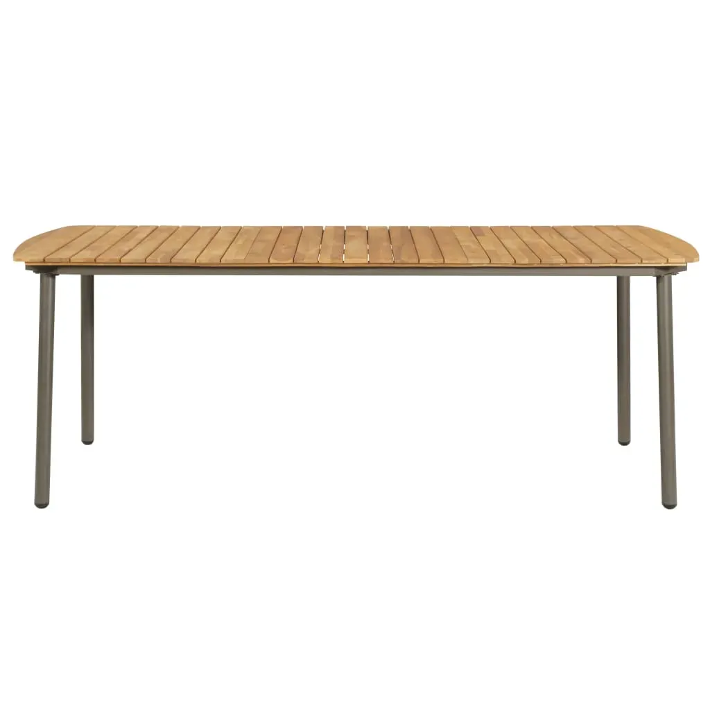 Enjoy a nice meal outdoors with your family and friends with our wooden garden dining table! The outdoor table will bring a touch of rustic charm to your patio, garden or terrace. The table is made of solid acacia wood with an oil finish and has a slatted design. The steel frame makes it sturdy and stable, and gives it an industrial look. The dining table is easy to assemble and maintain.