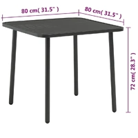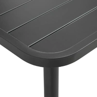 This metal dining table has a slatted design and will add a touch of industrial style to your patio, garden or dining room. This modern dining table is great for enjoying a meal with your family or friends. The dining table is made of sturdy steel that has been e-coated and then powder-coated. The e-coating (electrophoretic coating) is applied to make the table resistant to rust, weather, and long-term outdoor use, while the powder coating helps to enhance the durability. The garden table is easy to clean and maintain. The table is easy to assemble.