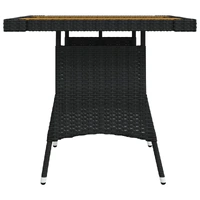 Renew your dining area with this garden table! It adds both elegant and rustic charm to your outdoor living space. You can enjoy the meal under the stars or sunlight with this dinner table. The patio table features a solid acacia wood tabletop and powder-coated steel frame, making it sturdy and durable. The outdoor table is covered with PE rattan, making it weather-resistant. Thanks to the lightweight PE rattan construction, you can move it easily. Note: In order to extend the life of your outdoor furniture, we recommend you to clean it regularly and do not leave it outdoors without protection unnecessarily.Clean: Use a mild soap solution.Storing: If possible, store in a cool, dry place indoors. If the product is stored outdoors, protect it with a waterproof cover. Wipe and dry the excess water or snow from flat surfaces after a rain or snowfall. Allow sufficient air circulation to avoid moisture-related damage.