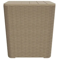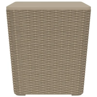 This stylish garden table with a convenient storage compartment and a removable lid is an ideal addition to your outdoor space. Durable material: Polypropylene (PP) is a popular plastic that is also one of the most used materials in outdoor furniture. It's lightweight, tough, and resistant to impact. Also, its resistance to UV rays and weathering makes it easy to clean and maintain.Imitation rattan look design: The outdoor table features an imitation rattan design that adds a touch of natural charm to your outdoor living space.Extra storage area: The garden side table has a storage area under the removable lid, which is perfect for keeping your essentials within reach and well organised.Practical lid: With the lid closed as a tabletop, the sturdy balcony table is perfect for keeping your phone, book, snack, or drink within reach. Note:To make sure your outdoor furniture stays beautiful, we recommend protecting it with a waterproof cover.