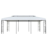 This spacious gazebo with ornate floral details will truly make an elegant addition to your outdoor living space. The vented garden marquee will ideally prevent the sun and rain from spoiling the fun at family gatherings, barbecues, afternoon picnics, and birthday parties. The party tent has a powder-coated steel construction with ornate floral details, as well as a polyester roof with PA coating, enabling it UV- and water-resistant. Thanks to the canopy's reinforced corners as well as hook and loop fasteners, they empower it to be easily attached to the gazebo's frame. NOTE: This product should NEVER be used under bad weather, such as strong wind, heavy rain, snow, storm, etc.