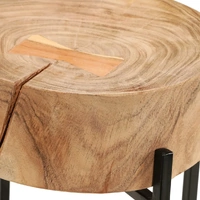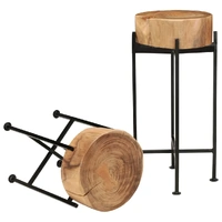 Our set of 2 wooden end tables will make a timeless addition to your interior decor. Crafted from solid acacia wood, the tables are durable and stable. The sturdy surface is ideal for potted plants. The sturdy steel frames contribute to the set's stability as well as its industrial style. Every step of the construction process is carried out with the greatest care, be it polishing, painting or lacquering. Assembly is easy. Delivery includes 2 side tables in different sizes. Important note: The colours and grains vary from piece to piece, making each piece unique and slightly different from the next. The delivery is random, ensuring the exclusivity and individuality of your product.