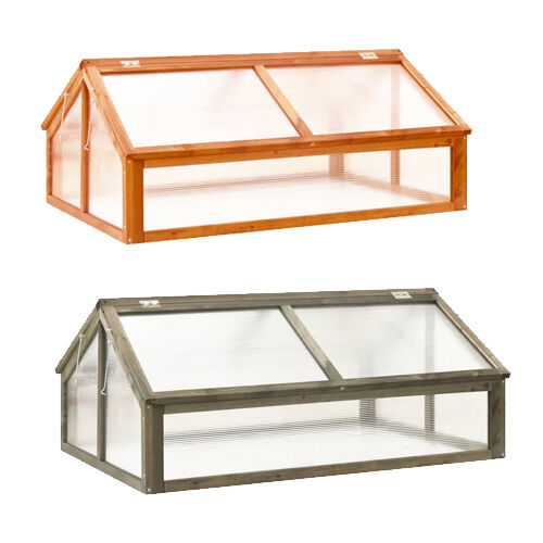 This wooden greenhouse is a great solution for protecting herbs from the cold weather and providing frost protection in the spring. It also complements your outdoor area. The garden greenhouse is made of solid firwood which is stable and durable. It is deep and wide enough to hold a large amount of soil and provide ample space for your plants, vegetables, herbs and flowers. It is easy for pouring or removing the plants due to the hinged lid. Please note the roof cannot withstand heavy snowfall.