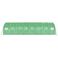 This spacious greenhouse can accommodate a considerable number of fruits, vegetables and plants. It is ideal for protecting your plants from adverse weather conditions. Durable PE cover: Polyethylene (PE) is the most widely used plastic material. It is UV-resistant, weather-resistant, anti-tear, lightweight, and easy to maintain. It also protects your plants against the damage from birds while offering heat preservation.Sturdy frame: Steel is an exceptionally hard and strong material. It offers sturdiness and stability. Galvanisation provides better protection against corrosion and is useful for products that'll be used outdoors as well as in harsh environments.Practical design: The plant house is designed for easy access and optimized air circulation thanks to its zippered roll-up door and 4 side roll-up mesh windows. Good to know:We recommend adding the foundation for added sturdiness. The roof of the greenhouse cannot withstand heavy snowfall.