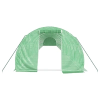 This spacious greenhouse can accommodate a considerable number of fruits, vegetables and plants. It is ideal for protecting your plants from adverse weather conditions. Durable PE cover: Polyethylene (PE) is the most widely used plastic material. It is UV-resistant, weather-resistant, anti-tear, lightweight, and easy to maintain. It also protects your plants against the damage from birds while offering heat preservation.Sturdy frame: Steel is an exceptionally hard and strong material. It offers sturdiness and stability. Galvanisation provides better protection against corrosion and is useful for products that'll be used outdoors as well as in harsh environments.Practical design: The plant house is designed for easy access and optimized air circulation thanks to its zippered roll-up door and 4 side roll-up mesh windows. Good to know:We recommend adding the foundation for added sturdiness. The roof of the greenhouse cannot withstand heavy snowfall.