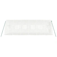 This spacious greenhouse can accommodate a considerable number of fruits, vegetables and plants. It is ideal for protecting your plants from adverse weather conditions. Durable PE cover: Polyethylene (PE) is the most widely used plastic material. It is UV-resistant, weather-resistant, anti-tear, lightweight, and easy to maintain. It also protects your plants against the damage from birds while offering heat preservation.Sturdy frame: Steel is an exceptionally hard and strong material. It offers sturdiness and stability. Galvanisation provides better protection against corrosion and is useful for products that'll be used outdoors as well as in harsh environments.Practical design: The plant house is designed for easy access and optimized air circulation thanks to its zippered roll-up door and 4 side roll-up mesh windows. Good to know:We recommend adding the foundation for added sturdiness. The roof of the greenhouse cannot withstand heavy snowfall.