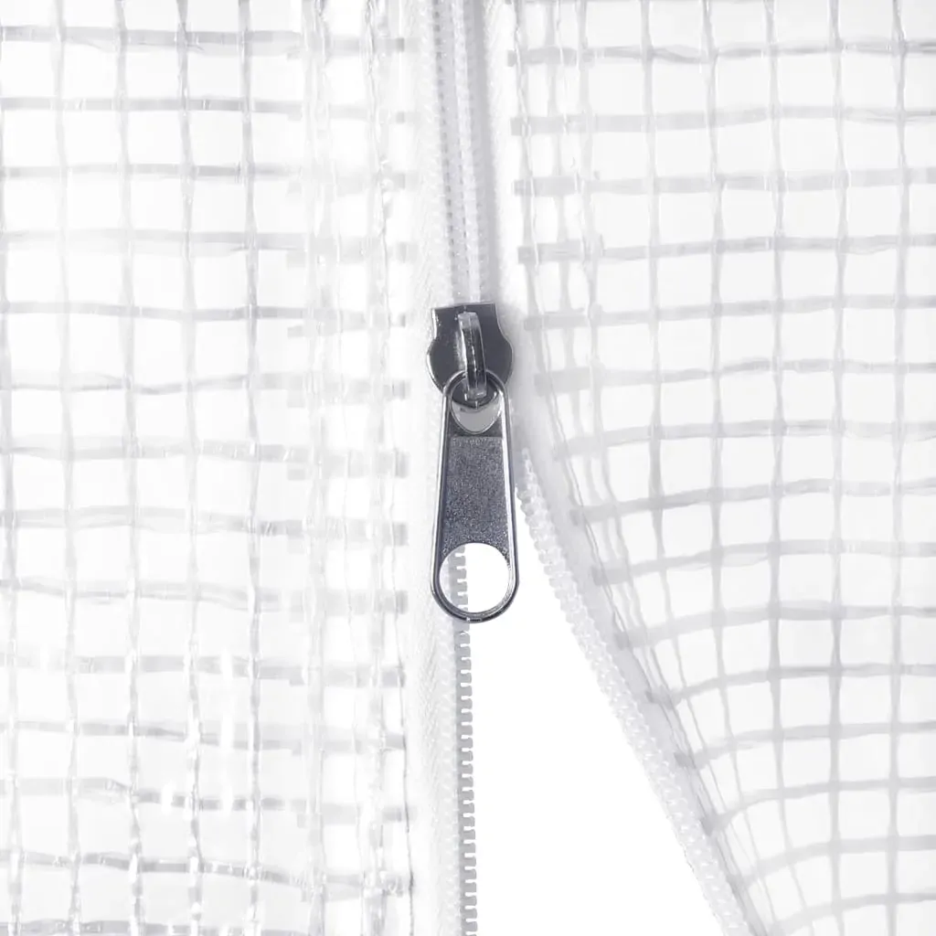 This spacious greenhouse can accommodate a considerable number of fruits, vegetables and plants. It is ideal for protecting your plants from adverse weather conditions. Durable PE cover: Polyethylene (PE) is the most widely used plastic material. It is UV-resistant, weather-resistant, anti-tear, lightweight, and easy to maintain. It also protects your plants against the damage from birds while offering heat preservation.Sturdy frame: Steel is an exceptionally hard and strong material. It offers sturdiness and stability. Galvanisation provides better protection against corrosion and is useful for products that'll be used outdoors as well as in harsh environments.Practical design: The plant house is designed for easy access and optimized air circulation thanks to its zippered roll-up door and 4 side roll-up mesh windows. Good to know:We recommend adding the foundation for added sturdiness. The roof of the greenhouse cannot withstand heavy snowfall.