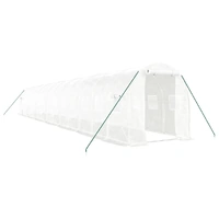 This spacious greenhouse can accommodate a considerable number of fruits, vegetables and plants. It is ideal for protecting your plants from adverse weather conditions. Durable PE cover: Polyethylene (PE) is the most widely used plastic material. It is UV-resistant, weather-resistant, anti-tear, lightweight, and easy to maintain. It also protects your plants against the damage from birds while offering heat preservation.Sturdy frame: Steel is an exceptionally hard and strong material. It offers sturdiness and stability. Galvanisation provides better protection against corrosion and is useful for products that'll be used outdoors as well as in harsh environments.Practical design: The plant house is designed for easy access and optimized air circulation thanks to its zippered roll-up door and 4 side roll-up mesh windows. Good to know:We recommend adding the foundation for added sturdiness. The roof of the greenhouse cannot withstand heavy snowfall.
